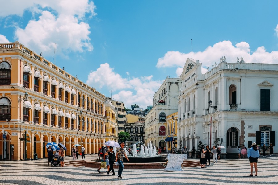 第九站:议事亭前地;民政总署大楼的对面,就是议事亭前地。作为澳门的市中心也是历史城区的一部分,这里是澳门不得不去的地标性广场。